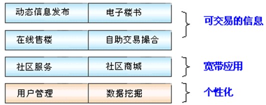 房地产行业网站建设方用于房地产开发商、代理商创建电子售楼书,进行网上交易撮合,发展电子商务的网络系统平台方案。